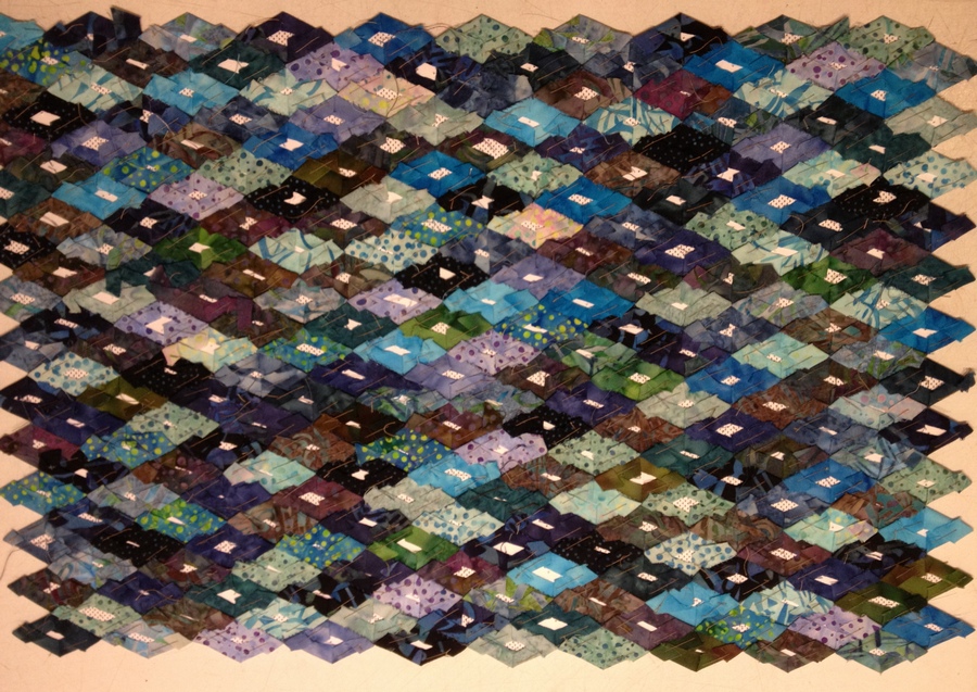 Derefter fik tæppet nogle tæsk i tørretumbleren, så nu er det blevet dejligt "crinklet" og quiltningen puffer mere op. Hmmmm.... skønt!